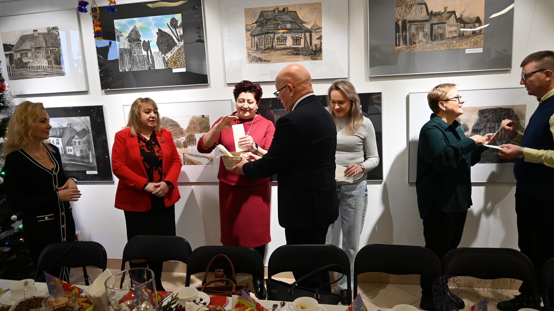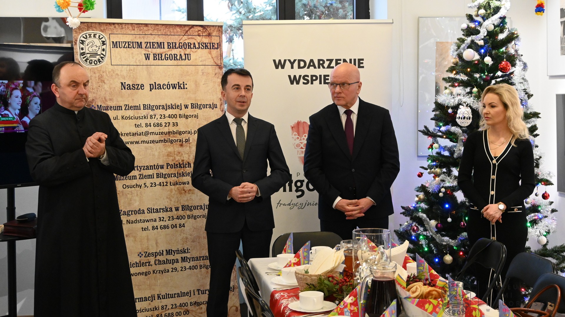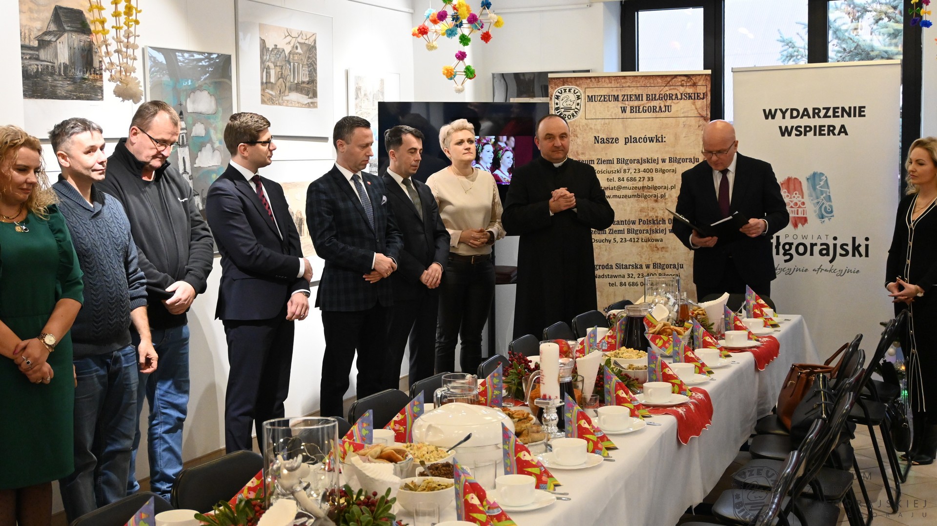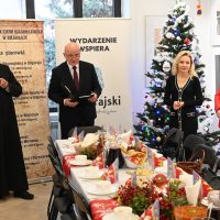Wigilia w naszym Muzeum była wyjątkowa i uroczysta. Wzięli w niej udział pracownicy Muzeum i Prywatnej Szkoły Podstawowej w Biłgoraju, a także przedstawiciele władz samorządowych województwa, powiatu i gminy. Uczestników  spotkania , jak i również  pięknie i sowicie zastawiony stół wigilijny przygotowany przez panie z Koła Gospodyń Wiejskich w Hedwiżynie,  pobłogosławił Ksiądz Proboszcz Roman Sawic. W nastrój oczekiwania na Narodzenie Pańskie wprowadzili nas uczniowie szkoły poprzez swój przepiękny występ.